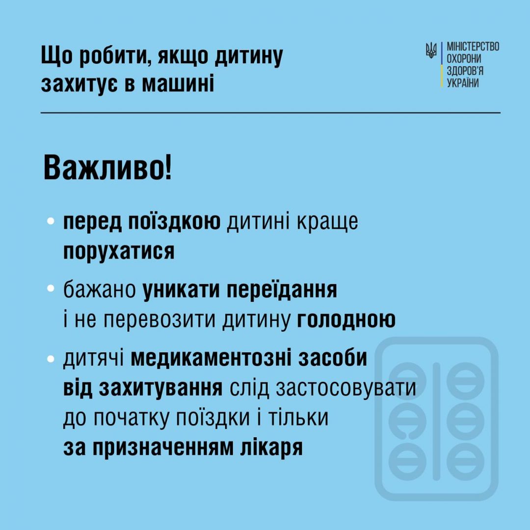 - Дитячі препарати від захитування слід використовувати до початку поїздки й тільки за призначенням лікаря.