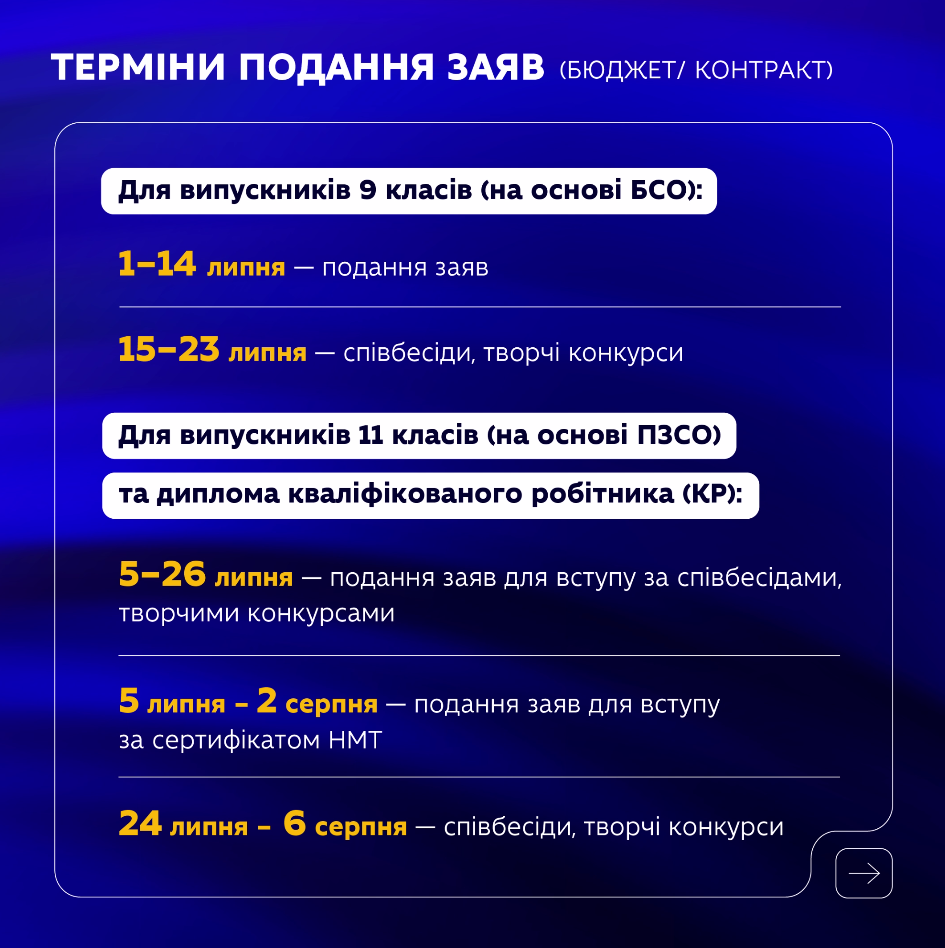 Терміни подачі заяв: