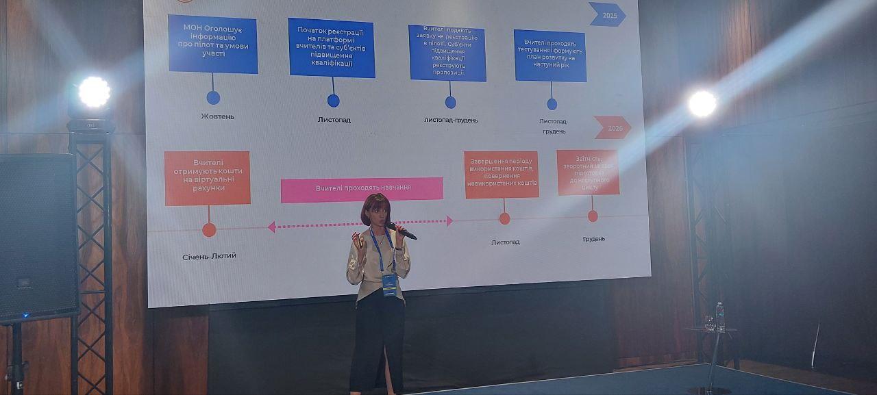 “У проєкті, в якому гроші ходять за вчителем у, нас передбачається єдине вікно для входу реєстрації для всіх учасників. Тобто іншого шляху, окрім цієї цифрової платформи, не буде. Це дає прозорість, зрозумілість, простоту і відсутність зайвих запитань. Спрощена взаємодія між суб’єктами підвищення кваліфікації та державою, тому що все прозоро і на одному майданчику”, - пояснює Надія Кузьмичова.