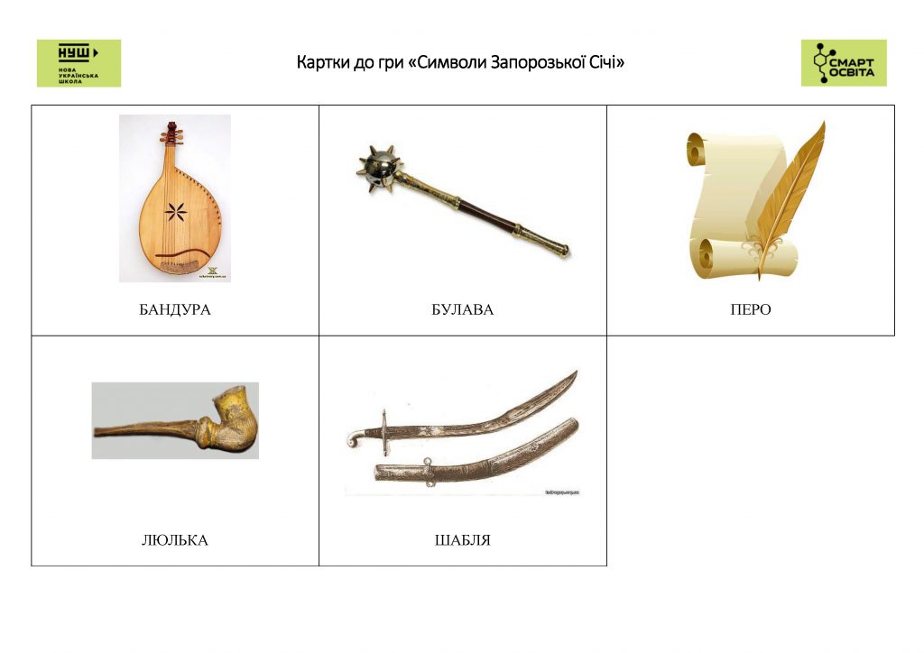 Картки до цієї гри можна завантажити за посиланням Картки до гри "Символи Запорозької Січі" .