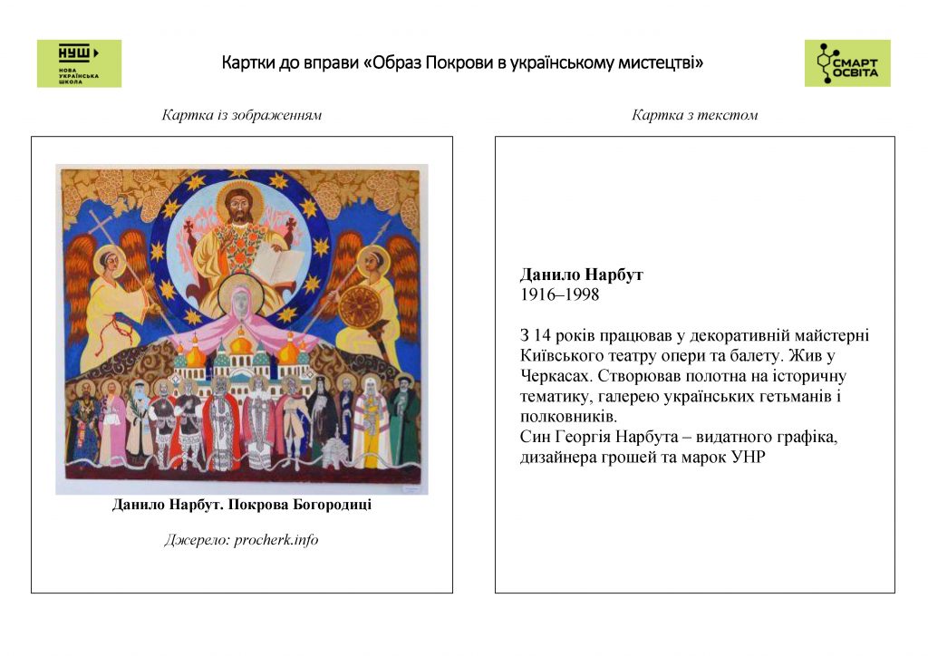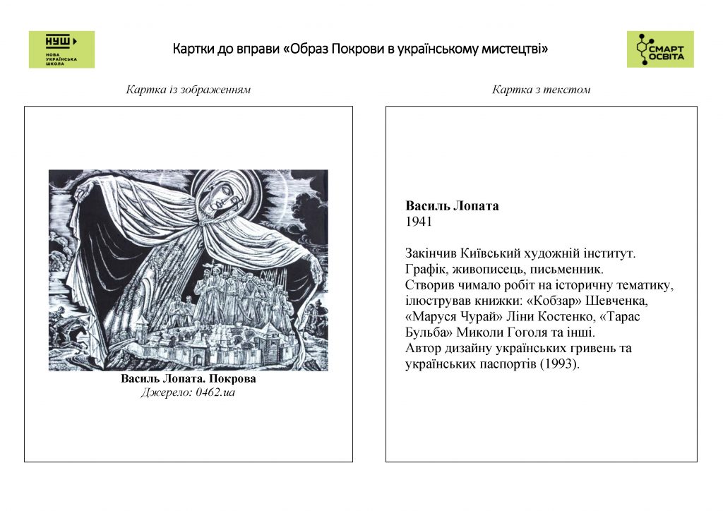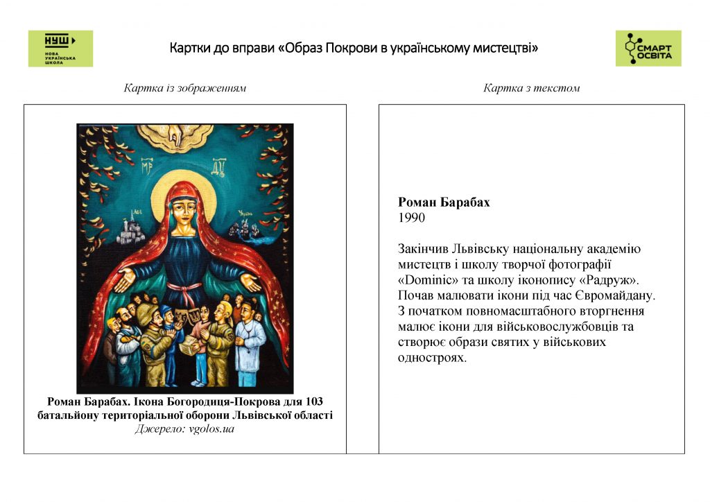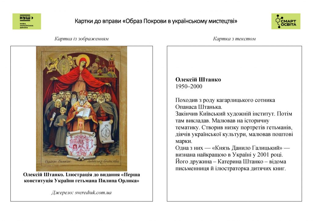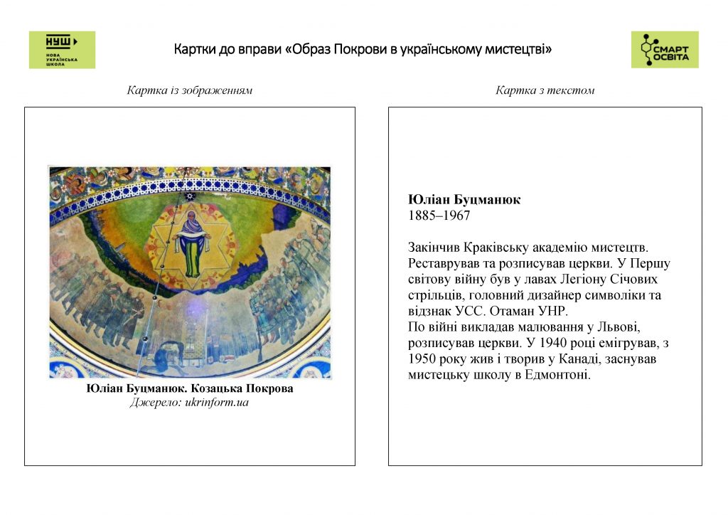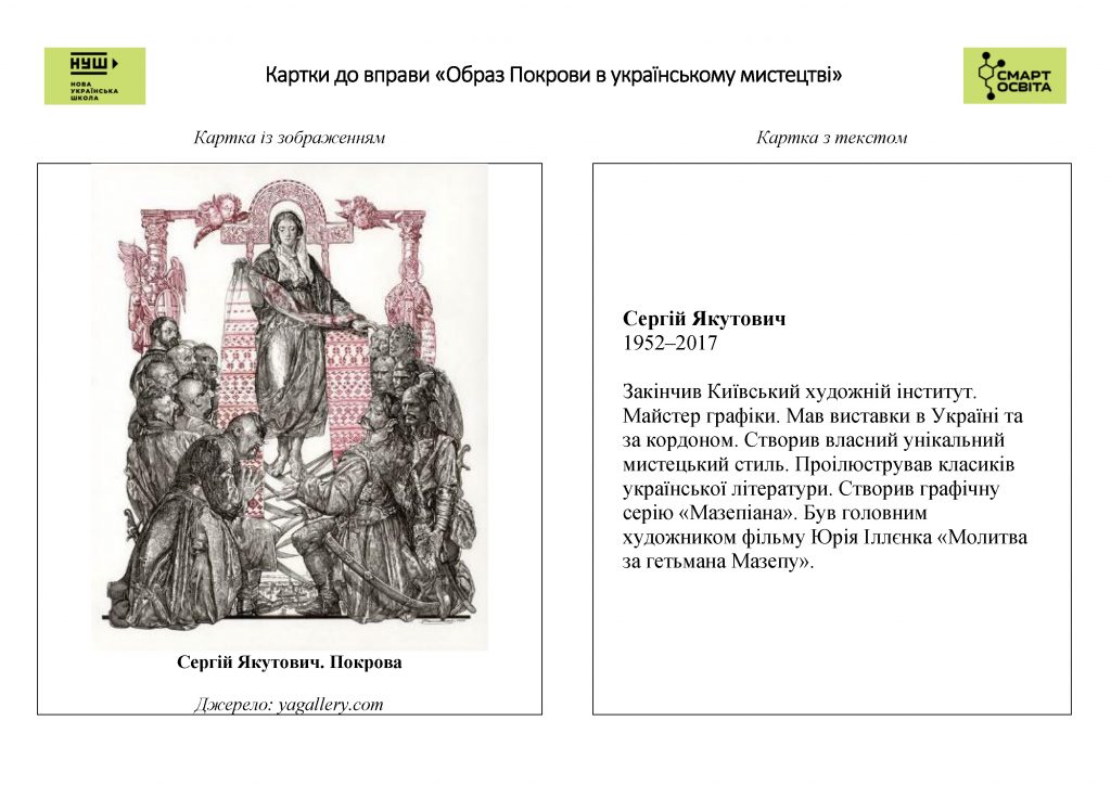 Всі картки до цієї вправи можна завантажити за посиланням Картки до вправи "Образ Покрови в українському мистецтві"