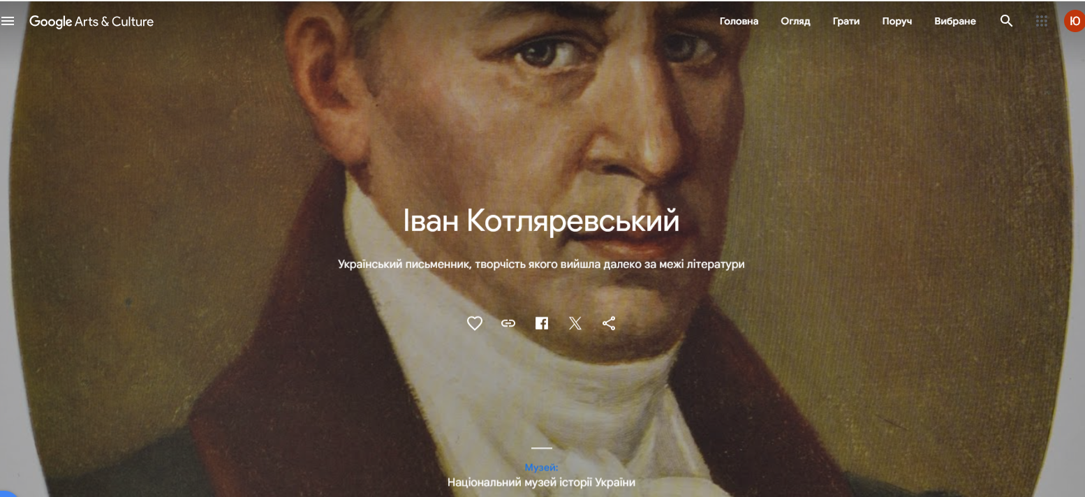 Дитина має можливість обрати “експонат онлайн” (наприклад Іван Котляревський).