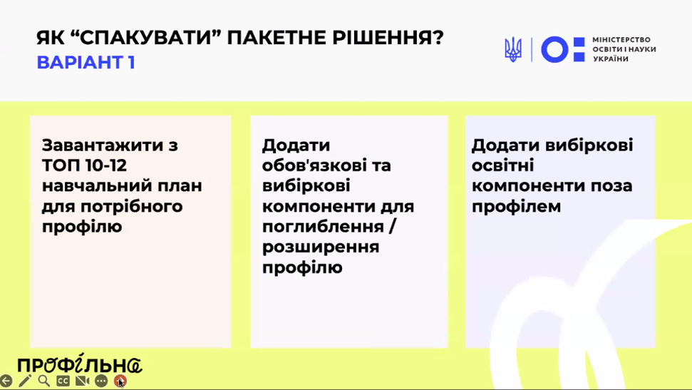 В рамках серії вебінарів, присвячених реформі старшої профільної школи, відбувся вебінар “Освітня програма й навчальний план в академічному ліцеї”. Його головна мета – надати освітянам практичне роз’яснення щодо впровадження реформи старшої школи та поділитися досвідом пілотних ліцеїв.