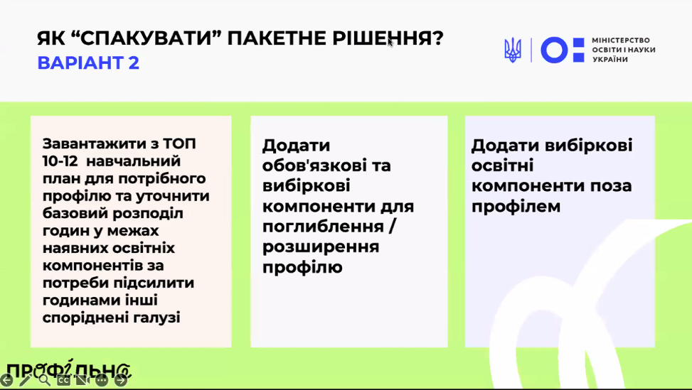 Також експертка порадила дотримуватись логіки спорідненості освітніх галузей: не поєднувати предмети, які не мають спільного методологічного підґрунтя, а будувати профільну траєкторію так, щоб вона відповідала майбутнім академічним цілям учнів.