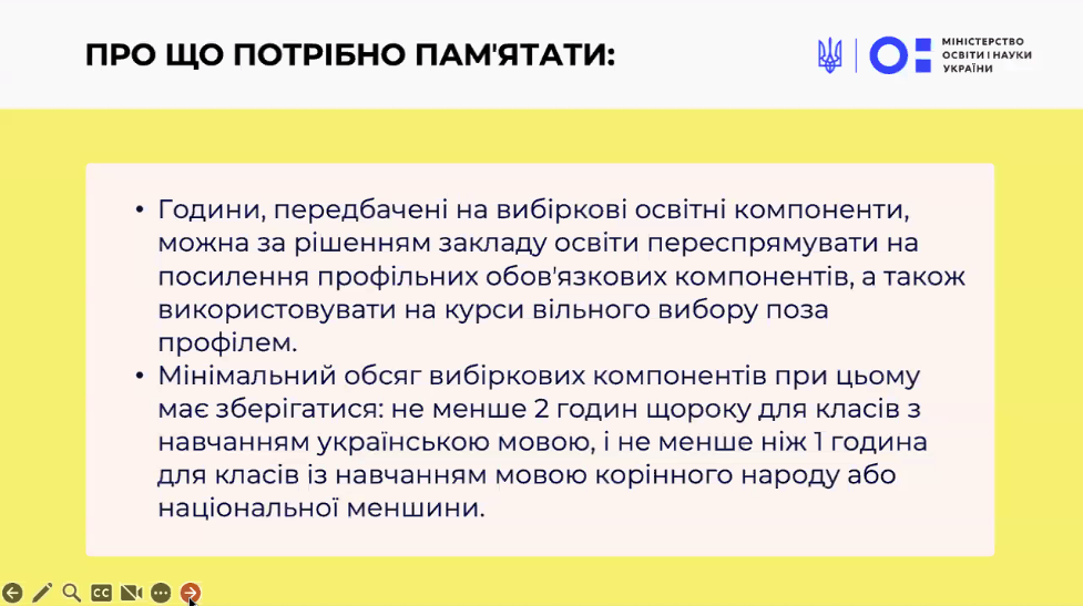 Водночас Романенко наголосила на важливому правилі: мінімум дві години на тиждень повинні залишатися для позапрофільних курсів. “Не можна забирати всі години з третього кошика на профільні предмети. Учням потрібен простір для розвитку, відпочинку й реалізації власних інтересів — від фотошопу до штучного інтелекту”, — зазначила вона.
