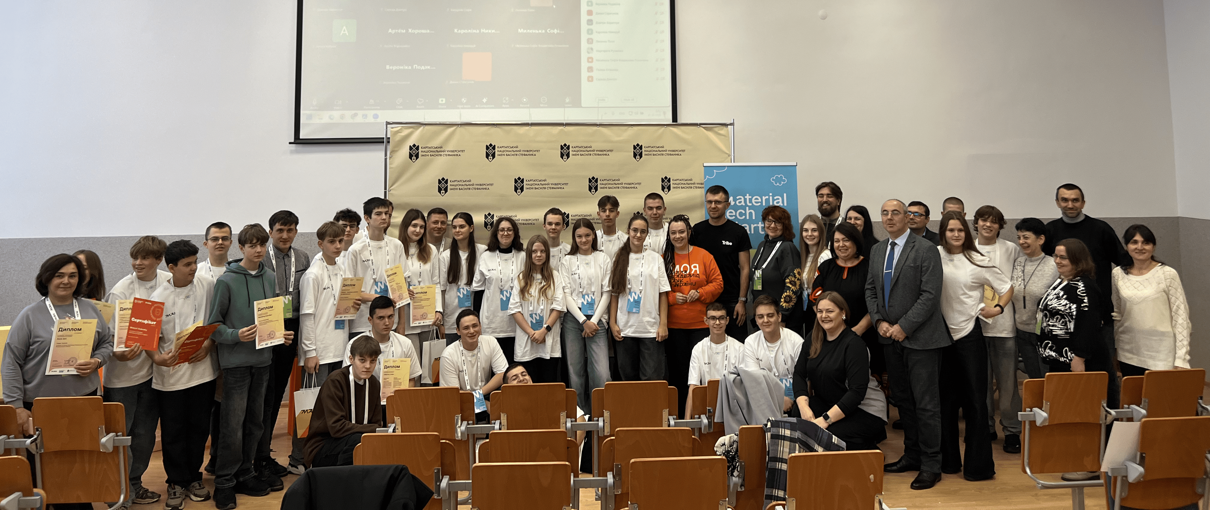 У Карпатському національному університеті імені Василя Стефаника 28–30 жовтня відбувся фінал Всеукраїнського конкурсу стартапів MaterialTech StartUp, де 50 найкращих учнівських команд із різних регіонів України представили власні інноваційні розробки у сфері матеріалів і технологій — від екологічних систем очищення води до медичних застосунків і дронів.