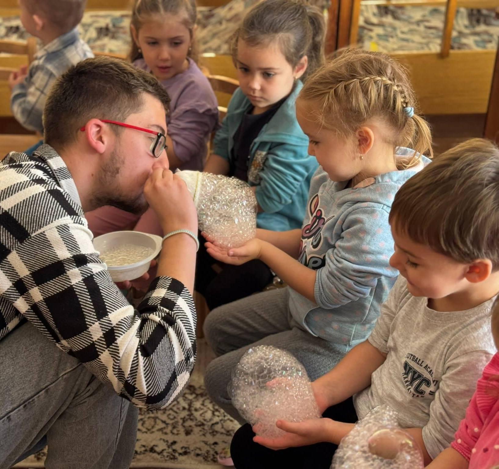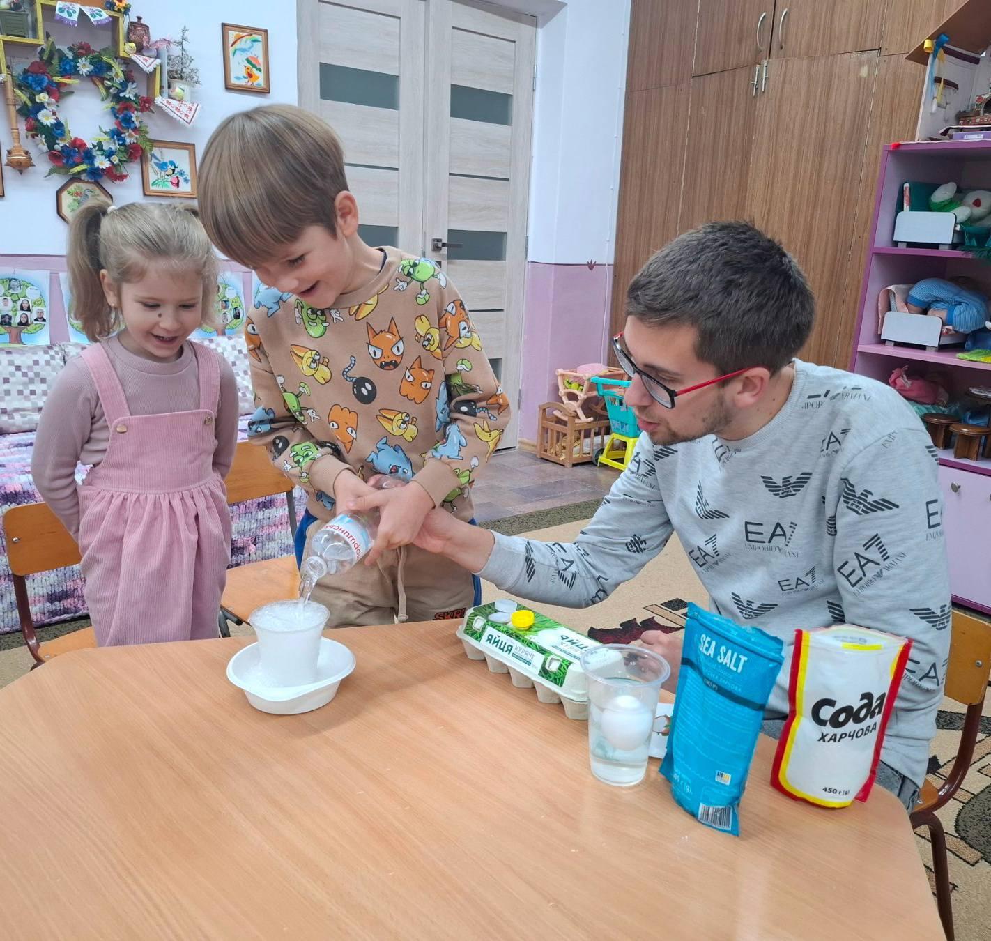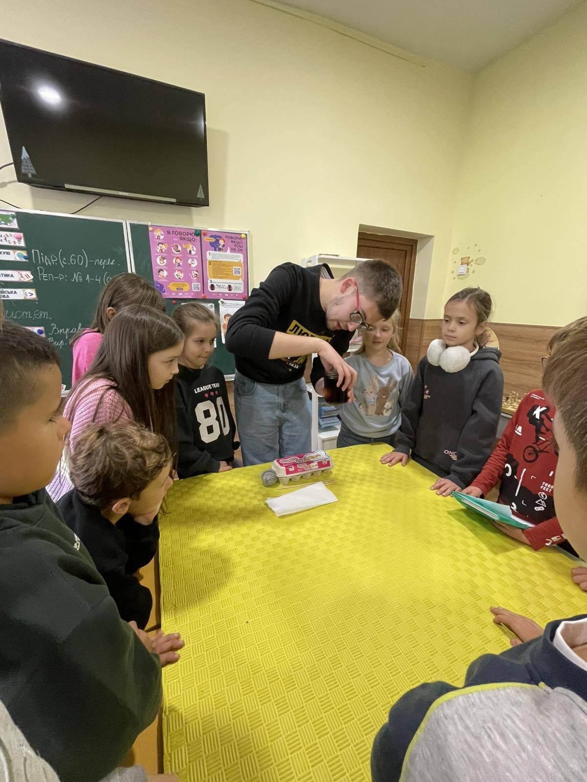 Його заняття — це поєднання природничих знань і гри. Діти створюють “лавові лампи”, “магнітні зони”, “вулканчики з оцту”, а потім самі пояснюють одне одному, що сталося. Ростислав лише підказує, коли треба.