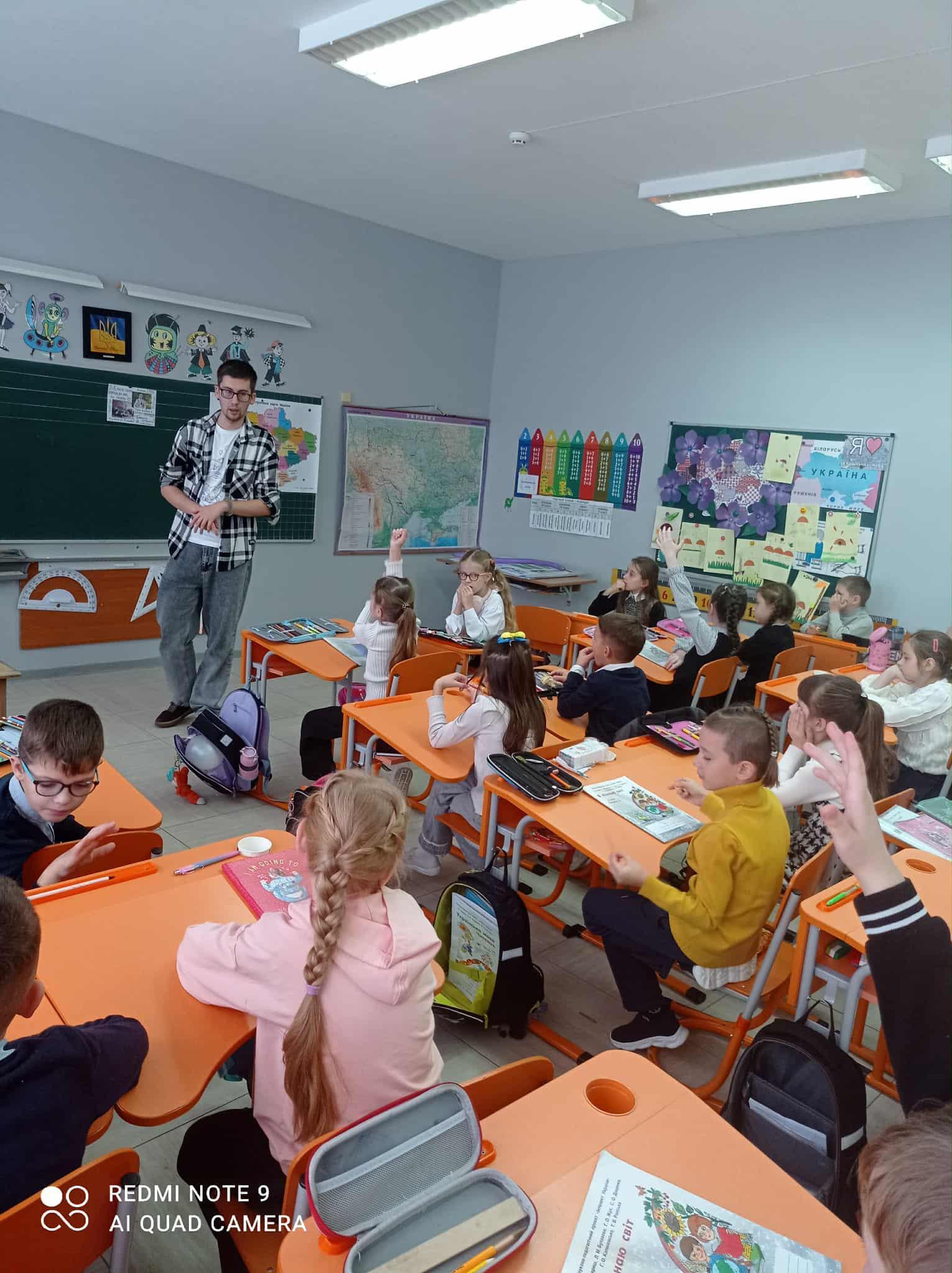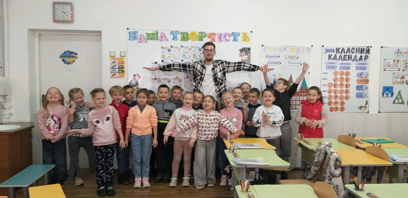 “Бував у школах у різних областях — від заходу до сходу країни. І скрізь діти однаково відкриті й щирі, просто атмосфера різна. У когось спокійніше, у когось стриманіше, але всюди видно, що їм цікаво. У всіх — одна жага до пізнання”.