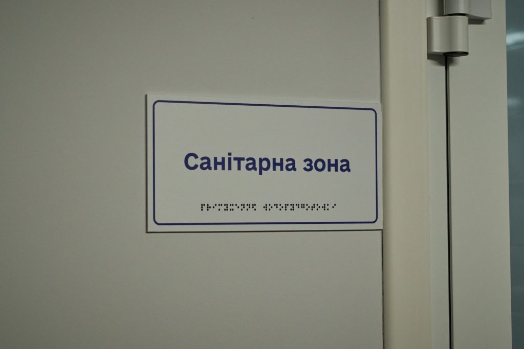 Ми починаємо нашу екскурсію з переодягальні. Вона поєднана з укриттям на випадок ворожих обстрілів. Оскільки ґрунтові води не дозволили будівельникам заглиблюватись у землю, укриття зробили із посиленого бетону.