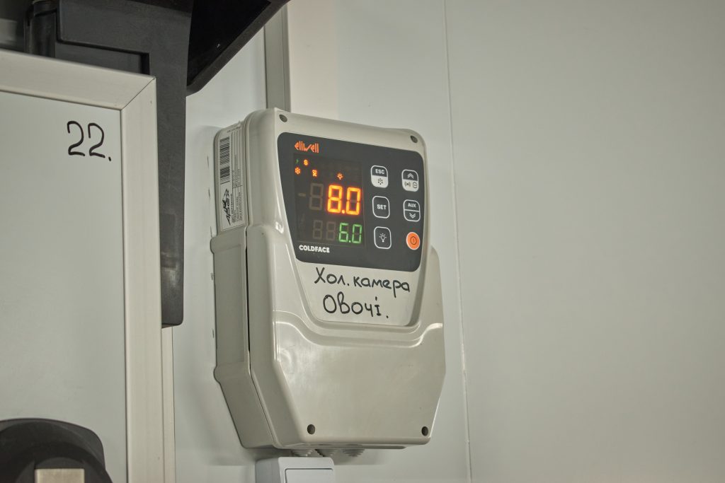 Холодильники для зберігання їжі відокремлені, оснащені датчиками регулювання температури.