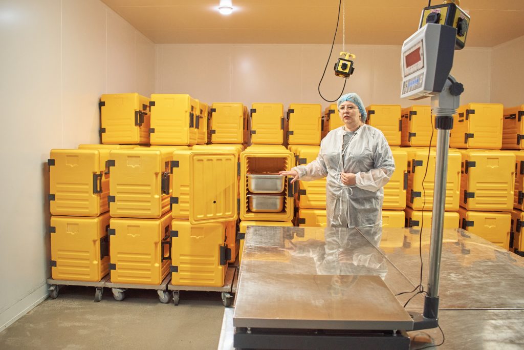 Нас зустрічає директорка фабрики-кухні Тетяна Алексійчук і вводить у курс справ, перш ніж ми побачимо виробництво.