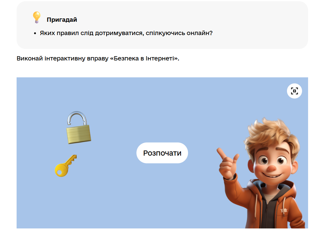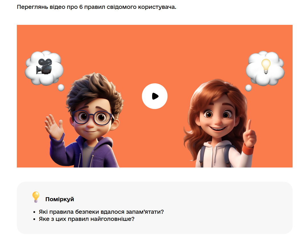 Життя в мережі вимагає правил. Цей блок перетворює тему безпеки на життєво необхідний практикум. Учні вивчають, як працюють “комп’ютерні мережі та хмарні сервіси”, як ефективно захищати свої дані та чому важлива “цифрова гігієна”. У нових уроках експерти також діляться порадами, як не стати жертвами шахраїв в інтернеті.