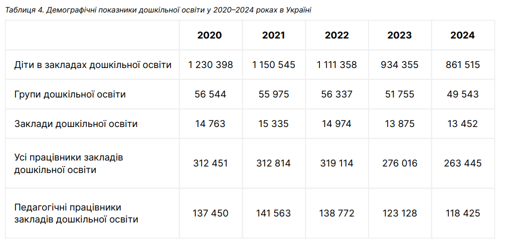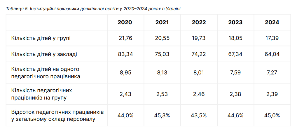 До цього додається структурний дефіцит молодих фахівців: “У дошкільній освіті спостерігається відтік молодих спеціалістів та брак нових кадрів, що створює ризики для стійкості системи в середньо- та довгостроковій перспективі”. Тобто система не просто має кадрову нестачу сьогодні — вона ризикує не мати достатньої кількості педагогів у майбутньому.