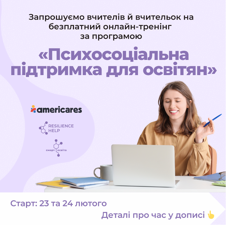 Програма “Психосоціальна підтримка для освітян” створено ГО “Смарт освіта” у партнерстві з Americares Foundation, Inc. Матеріали тренінгу розроблені на основі УТПЗ командою науковиць Житомирський Державний Університет імені Івана Франка (Ольга Савиченко, Наталія Портницька, Ірина Тичина) та психологинею Світланою Ройз за підтримки Friedrich Naumann Foundation for Freedom.