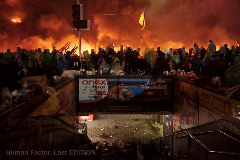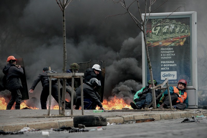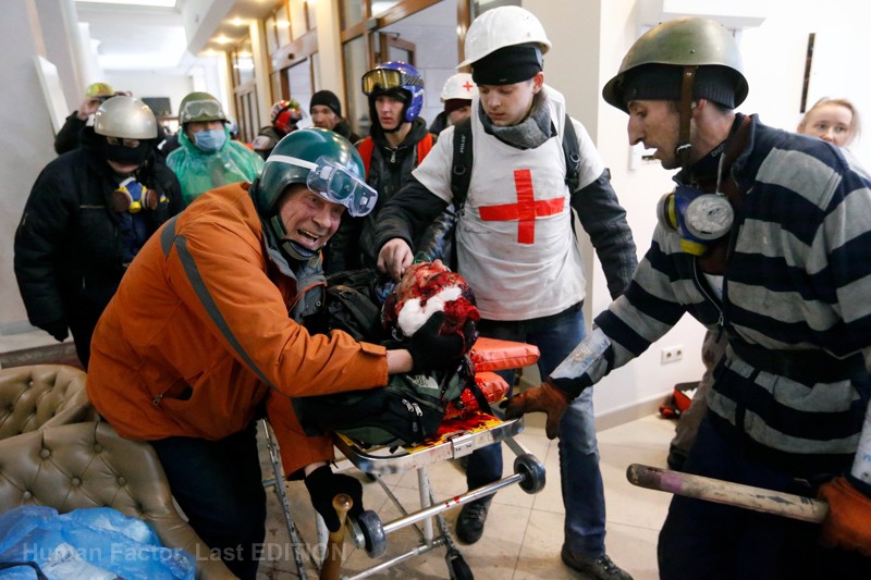 18 лютого силовики та “тітушки” жорстоко придушили Мирний наступ — ненасильницьку акцію протесту, яка прямувала до Верховної Ради з вимогою підтримати повернення до Конституції зразка 2004 року (у ній повноваження президента були істотно обмежені). У той же день спецназ почав силовий штурм Майдану, у ході якого спалахнув Будинок профспілок, а протестуючих відтіснили у вузьке кільце всередині головної площі Києва.