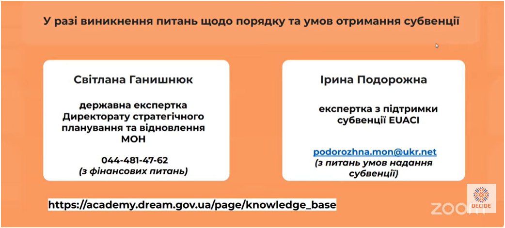 Сесія запитань і відповідей наприкінці вебінару фактично перетворилася на окремий практичний блок. Саме тут прозвучали речі, які рідко можна знайти в постановах чи офіційних роз’ясненнях, але з якими громади стикаються щодня — у роботі з документами, системою Dream та підготовкою заявок.