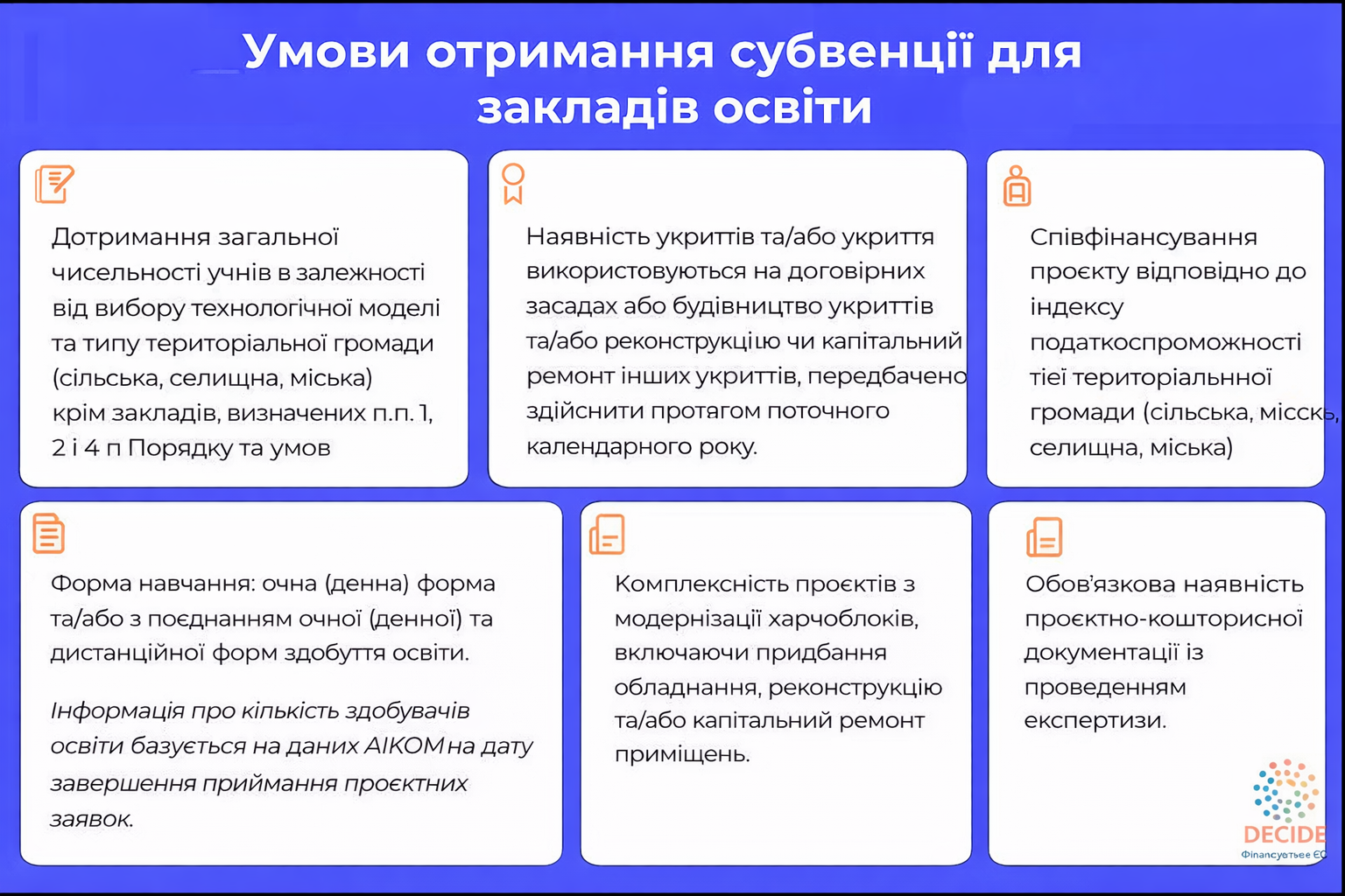Йдеться не про бюрократичну дрібницю, а про юридичну відповідальність засновника. Саме голова громади гарантує співфінансування, строки завершення робіт, наявність укриття або його будівництво. Відділ освіти може технічно супроводжувати заявку, але ключові гарантії залишаються за керівником громади.