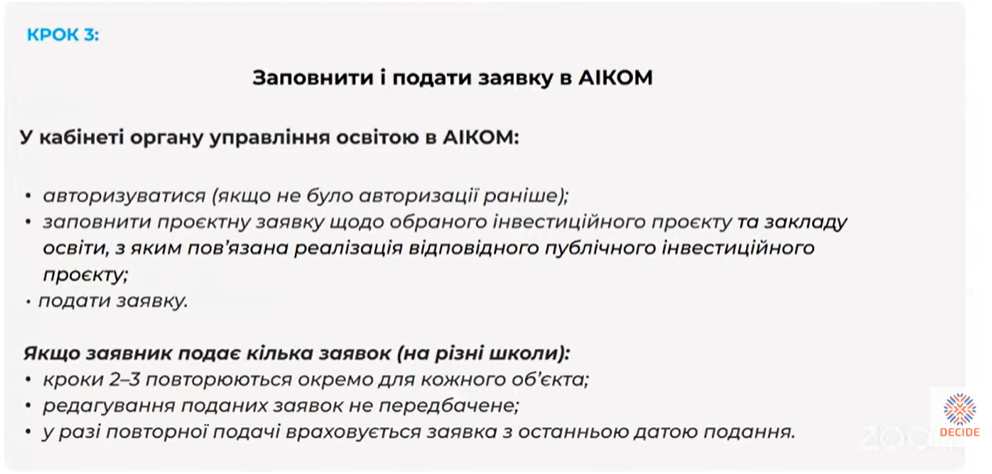 “Повинен бути комплексний проєкт. Не можна витрачати кошти виключно на закупівлю обладнання або на реконструкцію та капітальний ремонт”.