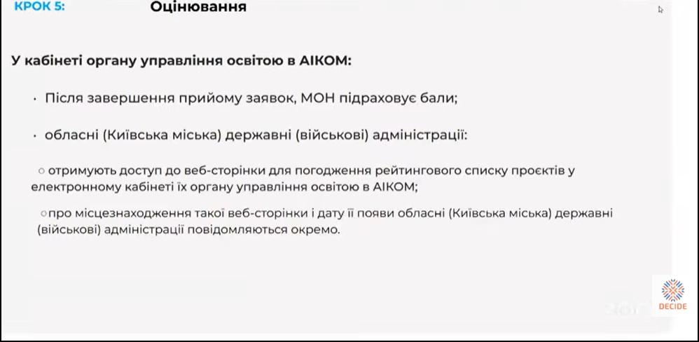 “Що ближче проєкт до старту робіт, наявність виконавця, договору або дозволу на будівництво, то більше балів”.