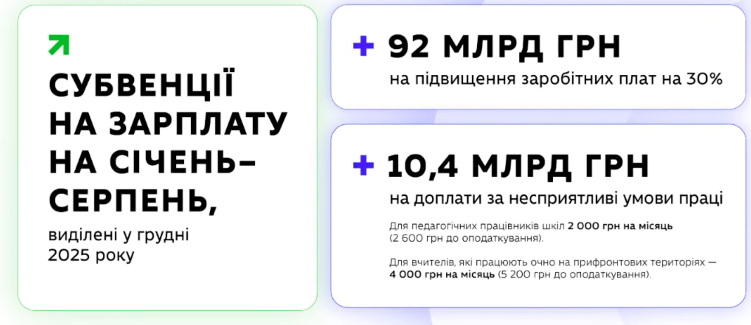 Також окрема субвенція існує на здійснення доплат вчителям – 2 тисячі по території всієї України і 4 тисячі для прифронтових територій за умови, якщо вчитель працює очно або змішано. Мова йдеться про субвенцію в 10 млрд грн для шкільної освіти. Забезпечення доплат для професійної освіти, закладів фахової передвищої освіти фінансуються з місцевого бюджету, яким було про це повідомлено 4 листопада 2025-го року з проханням погодити цю постанову і врахувати необхідні кошти в затвердженні місцевих бюджетів на наступний рік, – підкреслила Анастасія Софієнко.