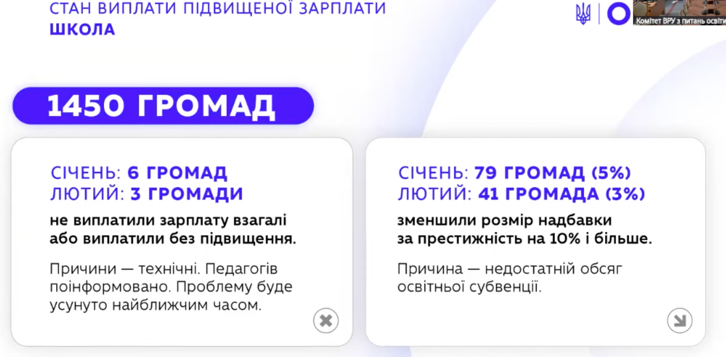 “Але за результатами моніторингу розподілу освітньої субвенції у січні було 6 громад, у лютому 2026 року 3 громади, котрі взагалі не виплатили зарплату або виплатили її без підвищення. В зоні ризику знаходиться надбавка за престижність, встановлена в розмірі 5-30%. Зменшивши розмір надбавки за престижність, але встановивши підвищений посадовий оклад, деякі громади не досягли рівня оплати 5% надбавки за престижність”, – каже заступниця міністра.