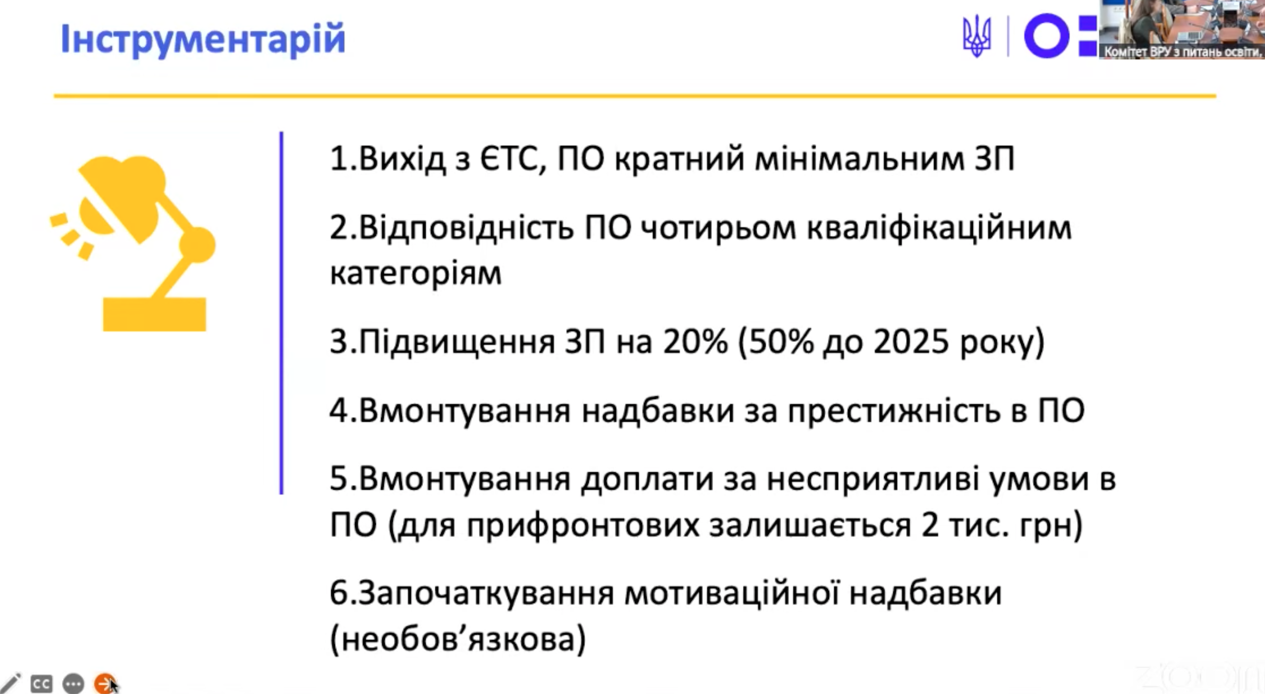 Анастасія Софіенко, заступниця міністра освіти і науки представила варіанти формування нових моделей оплати праці, акцентувавши, що з 1 вересня 2026 року відбудеться заплановане підвищення заробітної плати ще на 20% і таким чином буде забезпечено підвищення на 50%.