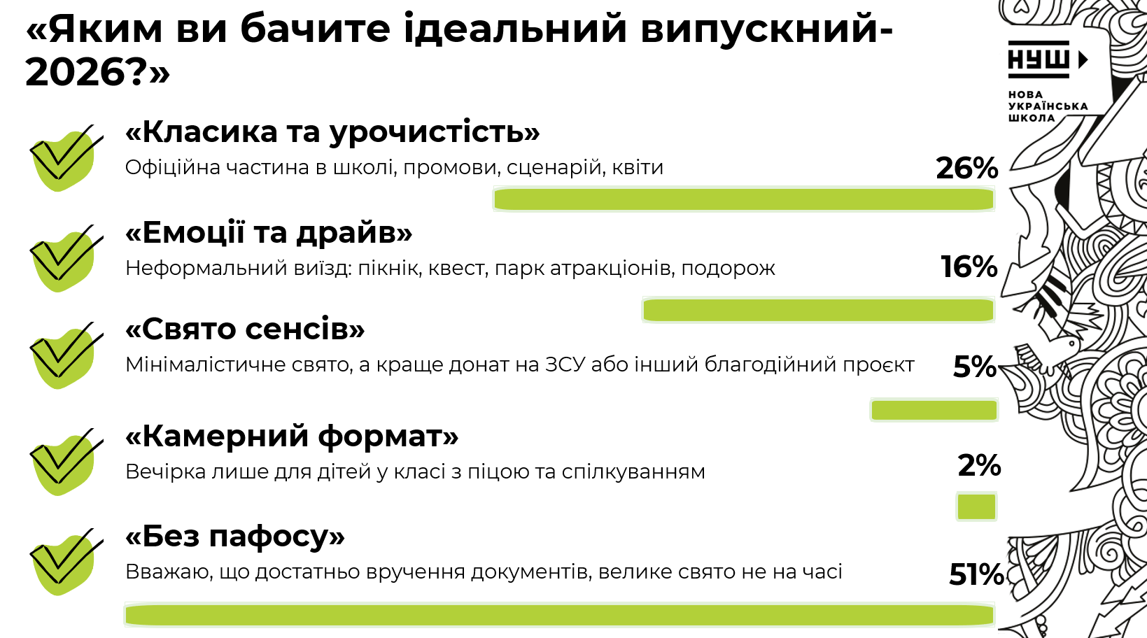 Медіа НУШ провело розгалужене дослідження: ми запитали вчителів, батьків і — найголовніше — самих учнів, яким вони бачать свій випускний у 2026 році. Результати вас здивують!