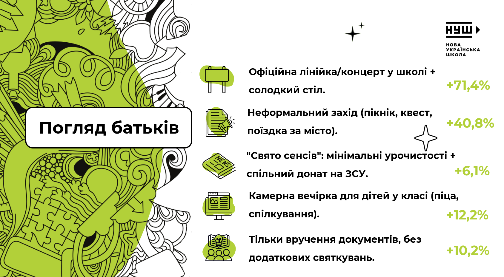 Тиск “колективного розуму”: Батьківські комітети часто маніпулюють фразою “ви псуєте дітям свято”, хоча, як свідчить і наше опитування, самі діти часто мріють про прості речі — піцу, кросівки замість туфель та можливість просто побігати.