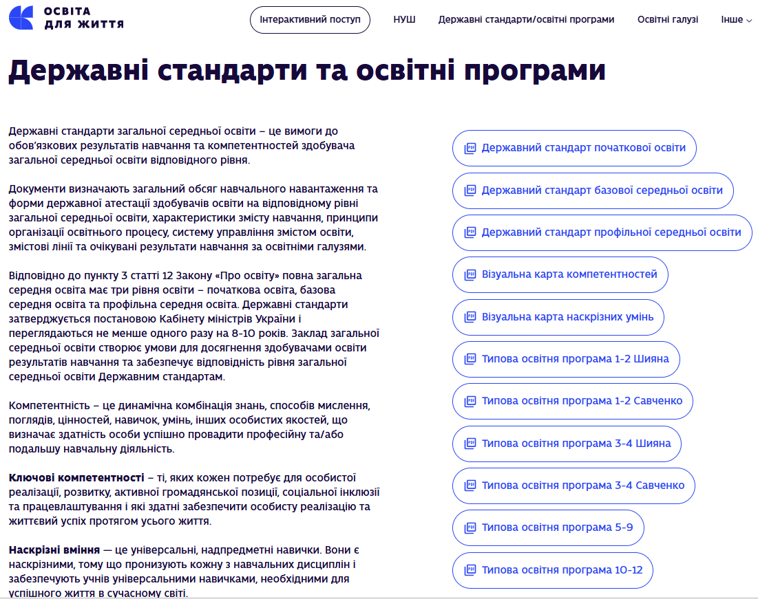 Якщо вкладка “Інтерактивний поступ” — це практика, то розділ “Державні стандарти та освітні програми” — це надійна база.