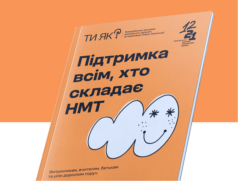 У відповідь на запит молоді виникла ідея посібника “Підтримка всім, хто складає НМТ”. Його створили в межах проєкту Фундація Олени Зеленської з розвитку мережі молодіжних просторів “12–21” спільно зі Всеукраїнською програмою ментального здоров’я “Ти як?” за експертної участі психологині Світлани Ройз.
