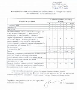 Експериментальний навчальний план початкової освіти експериментальних навчальних закладів
